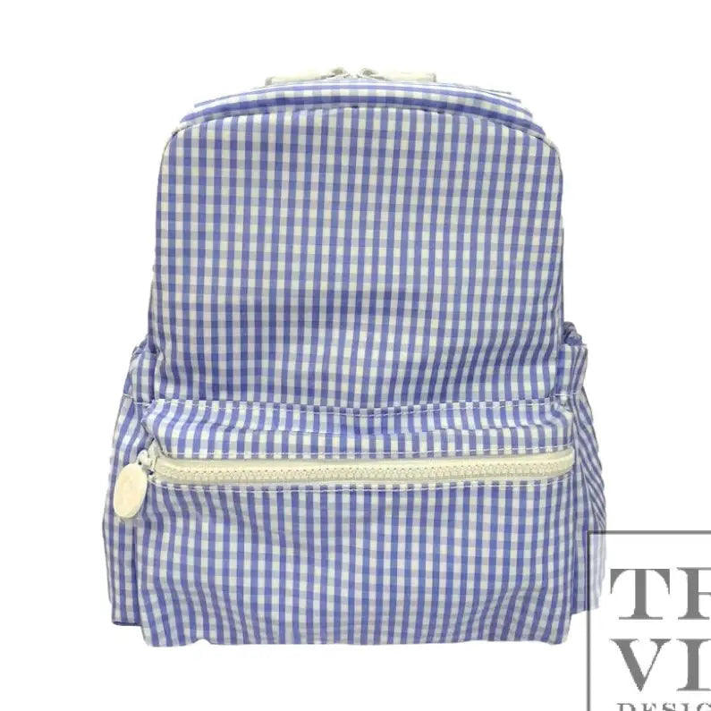 Our best-selling Backpacker now has a little sibling - meet the Mini Backer!! Soft to the touch, lightweight, and water-resistant, is equipped with 2-way top zipper for easy access with plenty of room inside and a front zip pocket for all the extras. It features adjustable padded straps, 2 side water pockets and a convenient top handle that make them easy to carry, and its machine washable! * Size: 8.25"l (base) x 11"h x 4.75"d * Custom Print in coated cotton with a thin eco-friendly matte coating * Lined in poly twill * 2-way Chunky White Zipper closure * Water and stain resistant & wipeable inside and out * Care: wipe with a clean damp cloth or machine wash cold/gentle/line dry * Style #TS645-200CC-GDF Coated, clean, and cute!