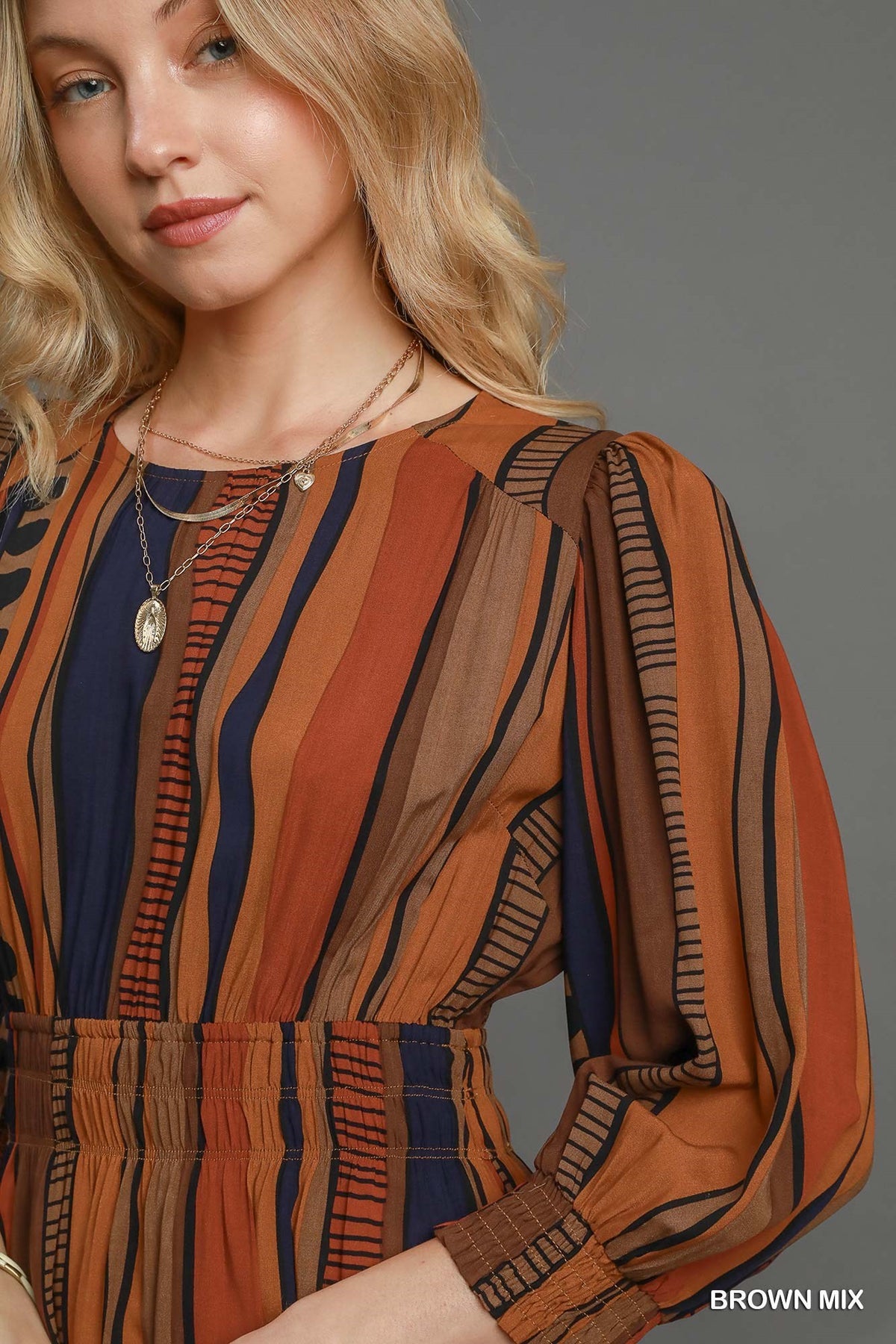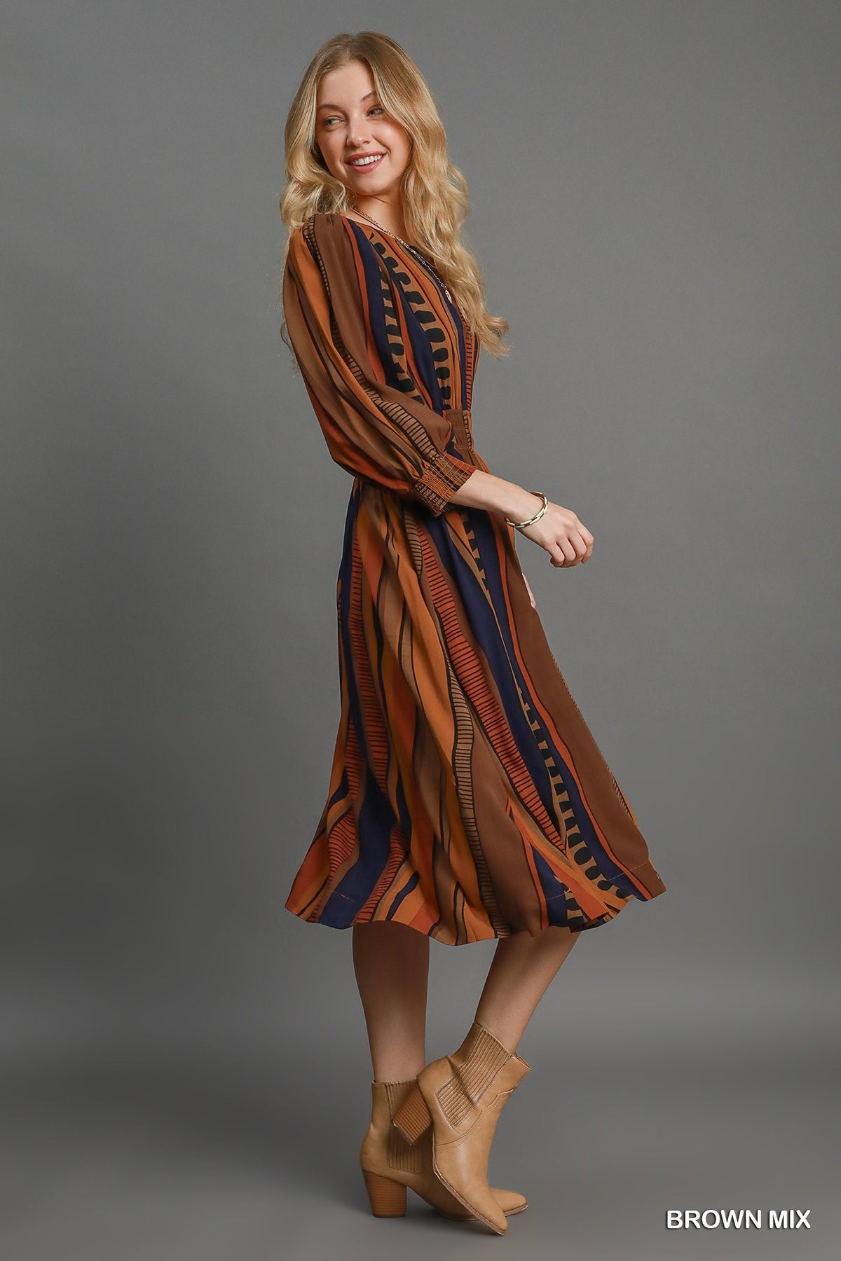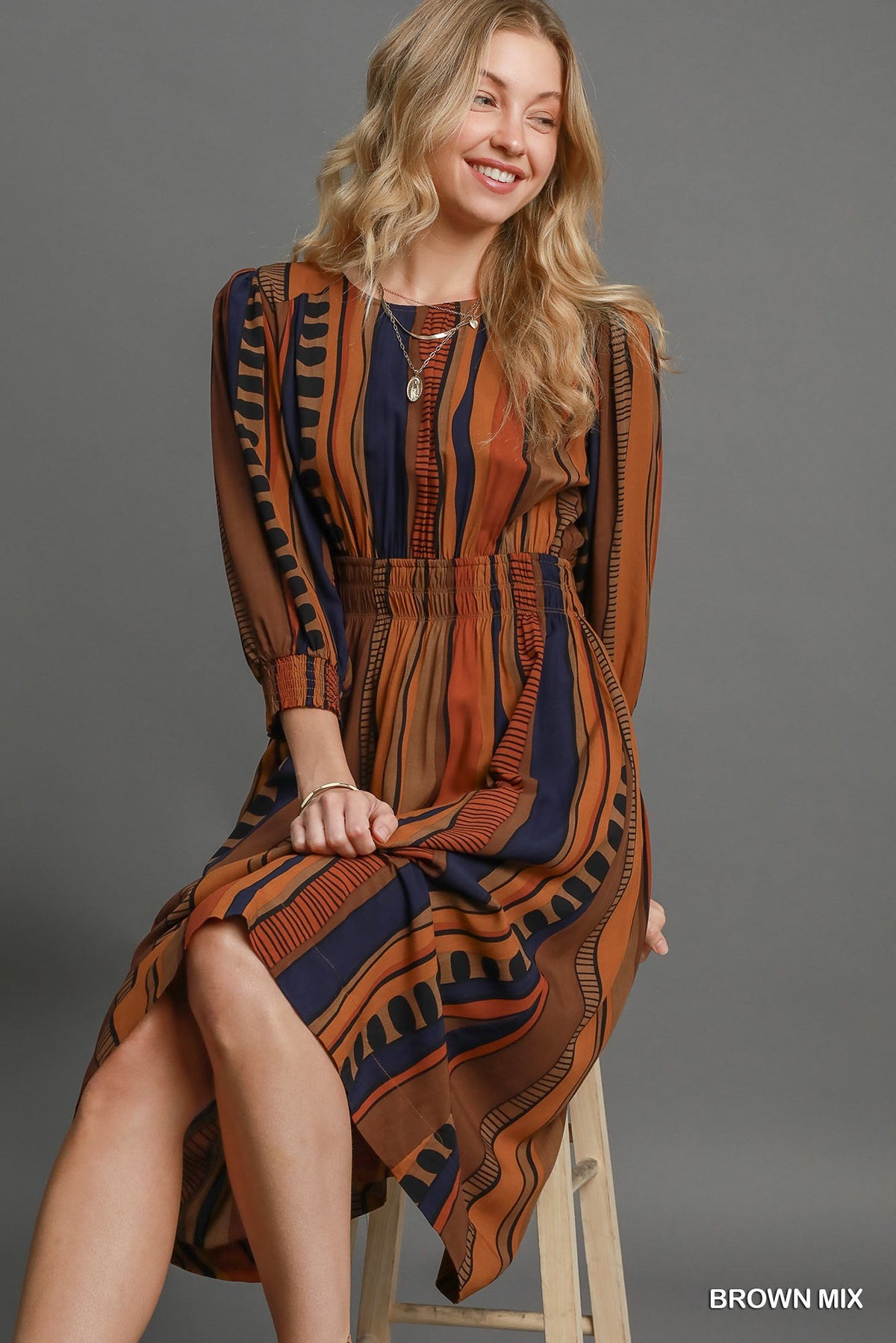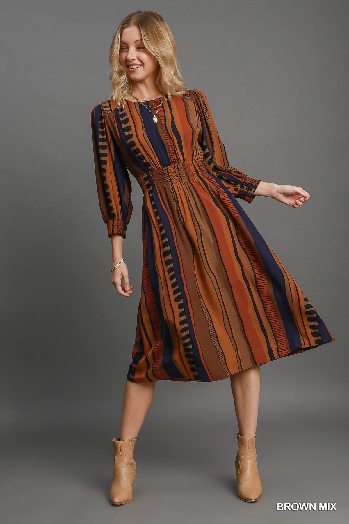 Elevate your style with the Casandra Brown Mix Dress! This stunning dress features a unique stripe pattern and a rich brown mix that will surely turn heads. The long sleeves add a touch of elegance while keeping you warm. Perfect for any occasion, this dress is a must-have for any fashion-forward individual.