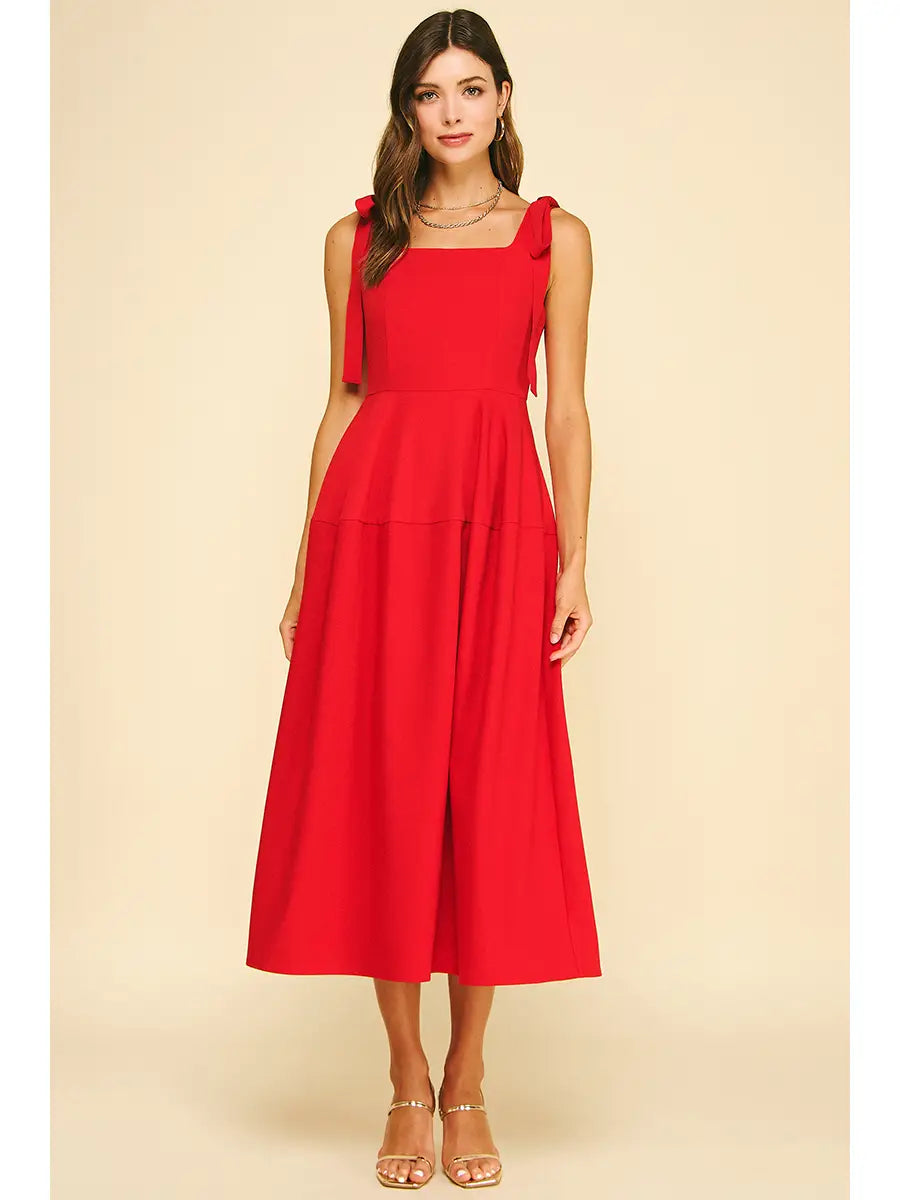 Elevate your wardrobe with this stunning red dress, designed to turn heads with its charming ribbon tie details on the shoulders. The vibrant red hue flatters every complexion, while the delicate ribbon accents add a touch of elegance and sophistication. Perfect for date nights, special occasions, or whenever you want to feel confident and radiant. This versatile piece transitions seamlessly from day to evening, making it an essential addition to any fashion-forward closet. Slip it on and discover why this dress is the ultimate go-to for making a memorable impression.