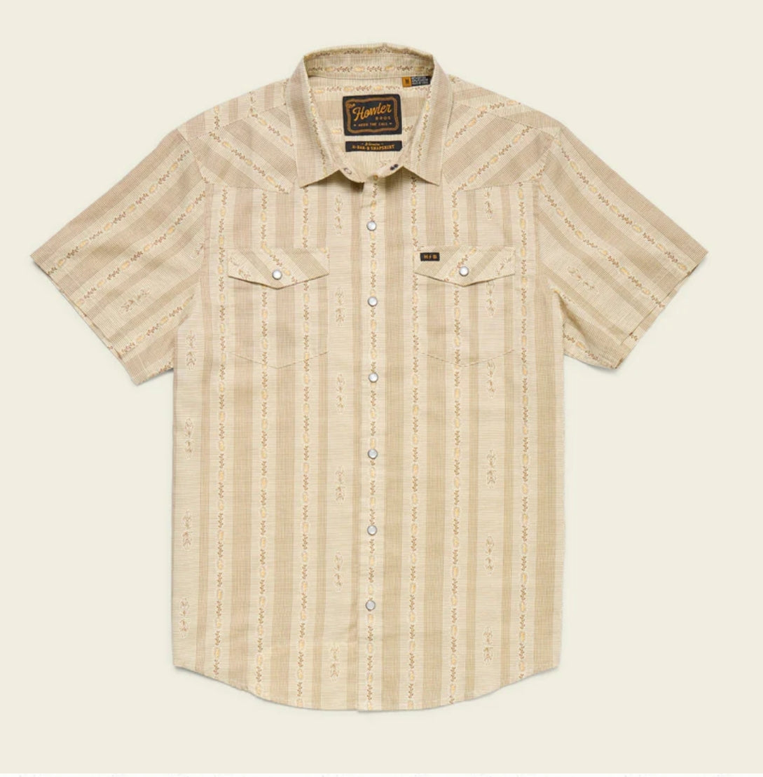 Our H Bar B Snapshirt is one of our most popular releases every season because of its glorious pearl snaps and timeless good looks. It is THE new classic pearl snap shortsleeve. We twist it up each season in our very own vintage inspired prints and plaids with our HB original sunglass cleaning microfiber at the hem. There’s a whole stampede of imitators out there trying to get in the pasture with their own version of this shirt. Choose your horse wisely and make sure it’s branded H Bar B.