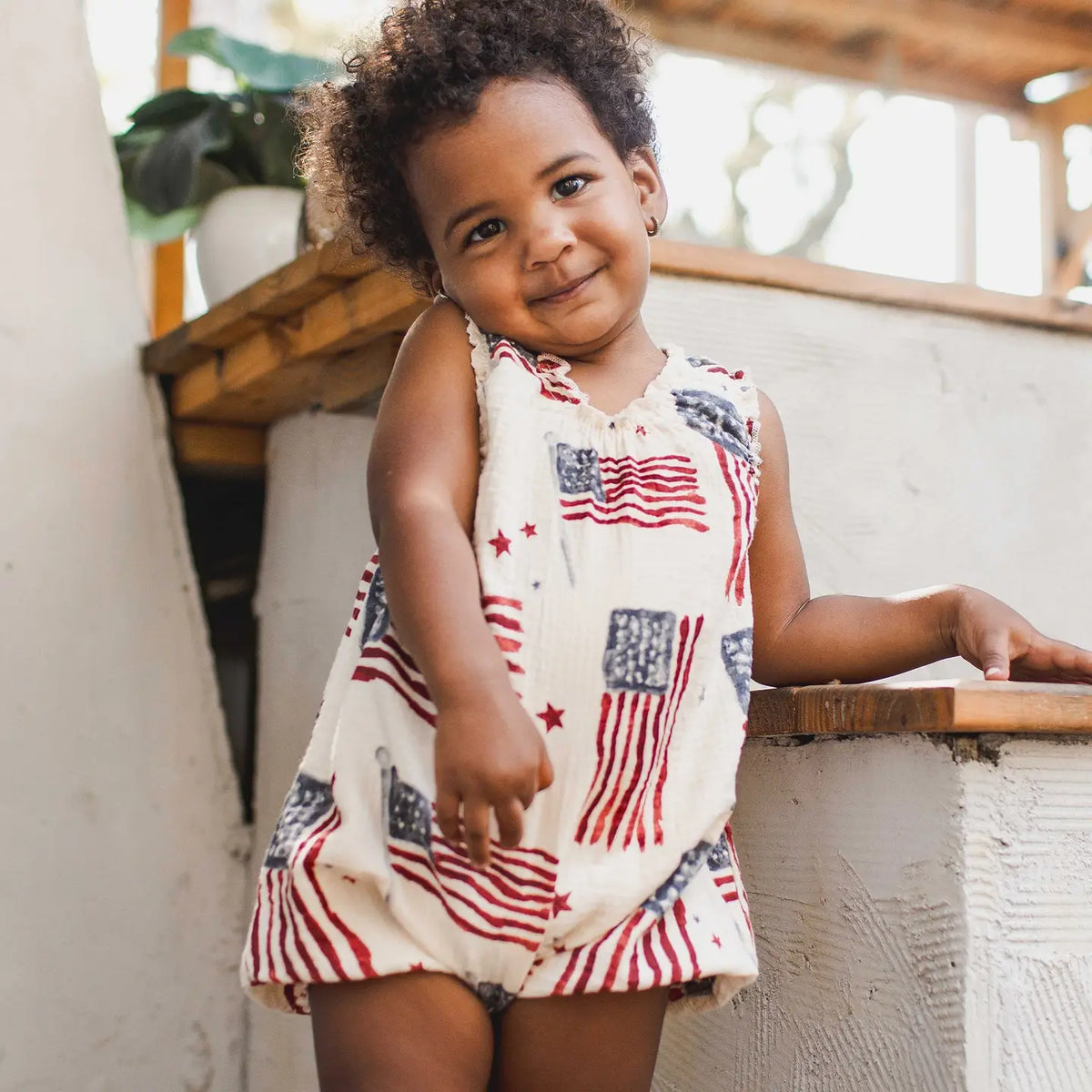 Celebrate patriotic style with this charming cream bubble romper featuring a classic American flag design. Perfect for little ones, the soft, breathable fabric keeps babies comfortable all day long. The bubble silhouette offers a playful, timeless look that's ideal for holidays, parades, or everyday wear. Easy to dress and undress with practical snaps, this romper is a must-have for any patriotic wardrobe.