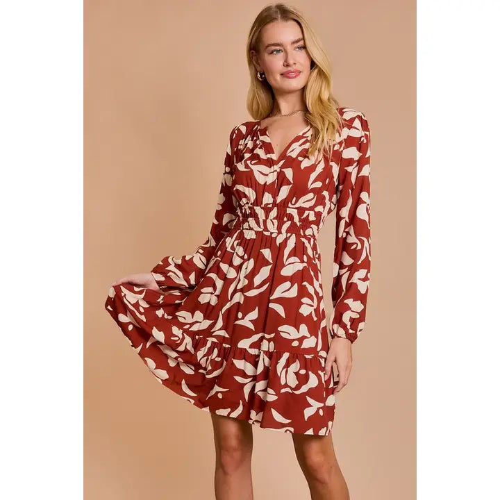 Elevate your style with the Anastasia Floral Dress! Featuring long sleeves, an elastic waist, and a beautiful ruffle hem, this dress will flatter your body and add a touch of elegance to any occasion. Stay comfortable and chic all day long in this must-have piece.