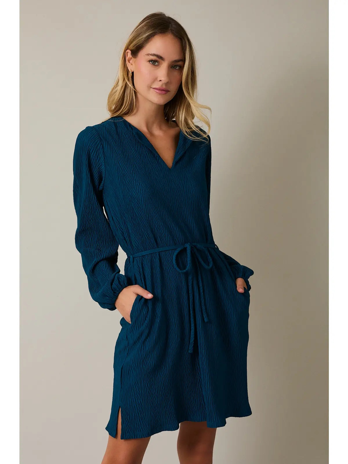 Elevate your everyday style with the Stacy Dark Teal Dress, a versatile piece that combines timeless elegance with modern comfort. The flattering notch neckline frames your face beautifully, while the adjustable waist tie lets you customize the fit to your body and mood. Rich dark teal hues complement virtually any complexion, making this dress a go-to choice for work, weekend outings, or casual gatherings. Effortlessly polished and undeniably wearable, this dress deserves a permanent spot in your wardrobe.